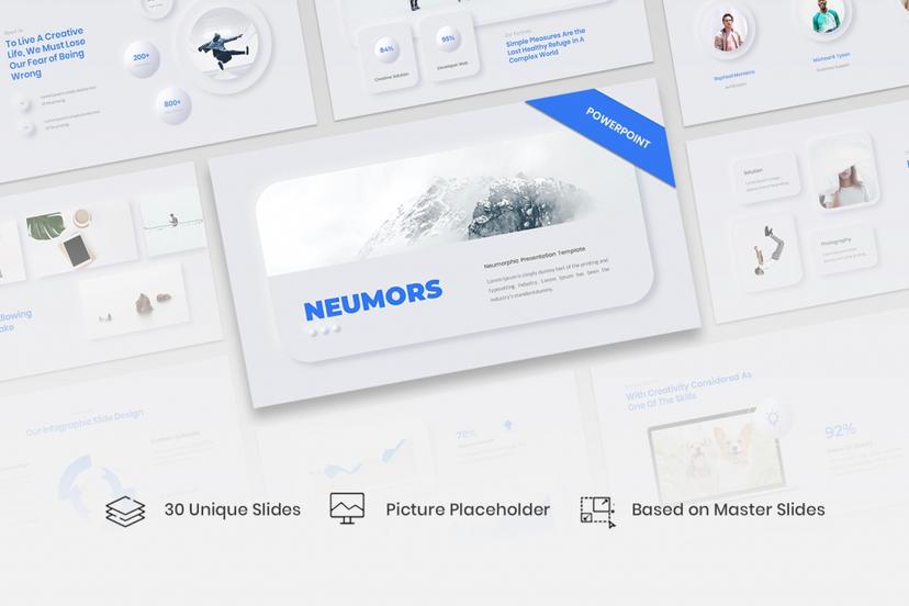 - Get Started: A template with a bold, clean opening like our Neumorphic Template sets a modern and professional tone from the start.